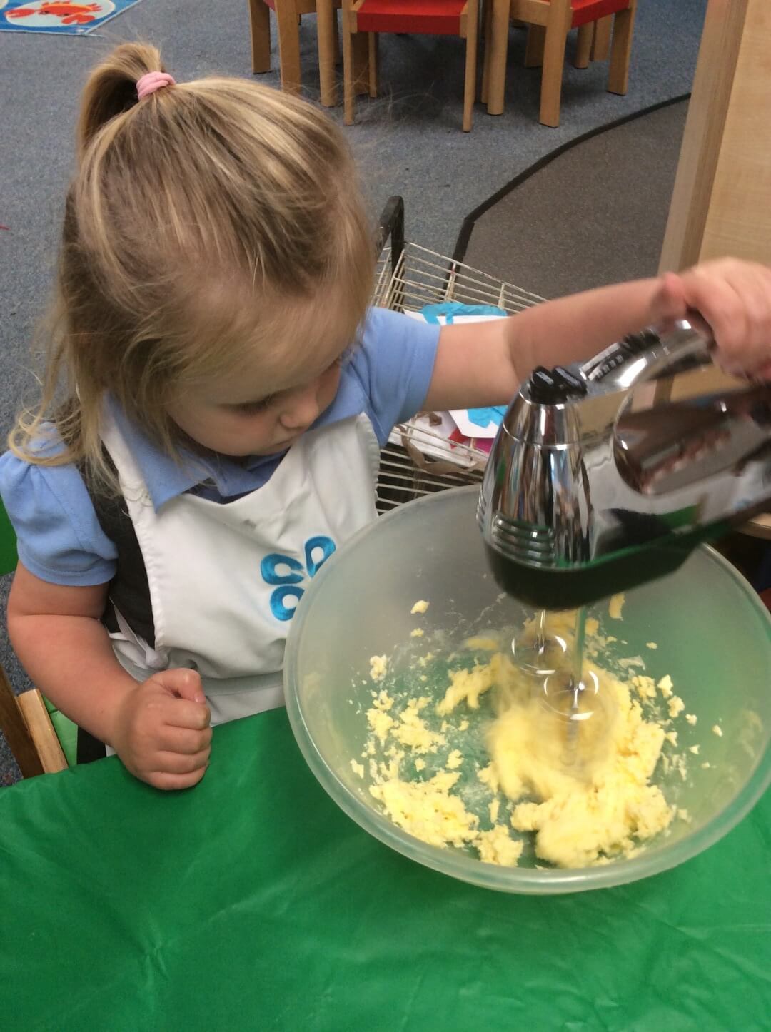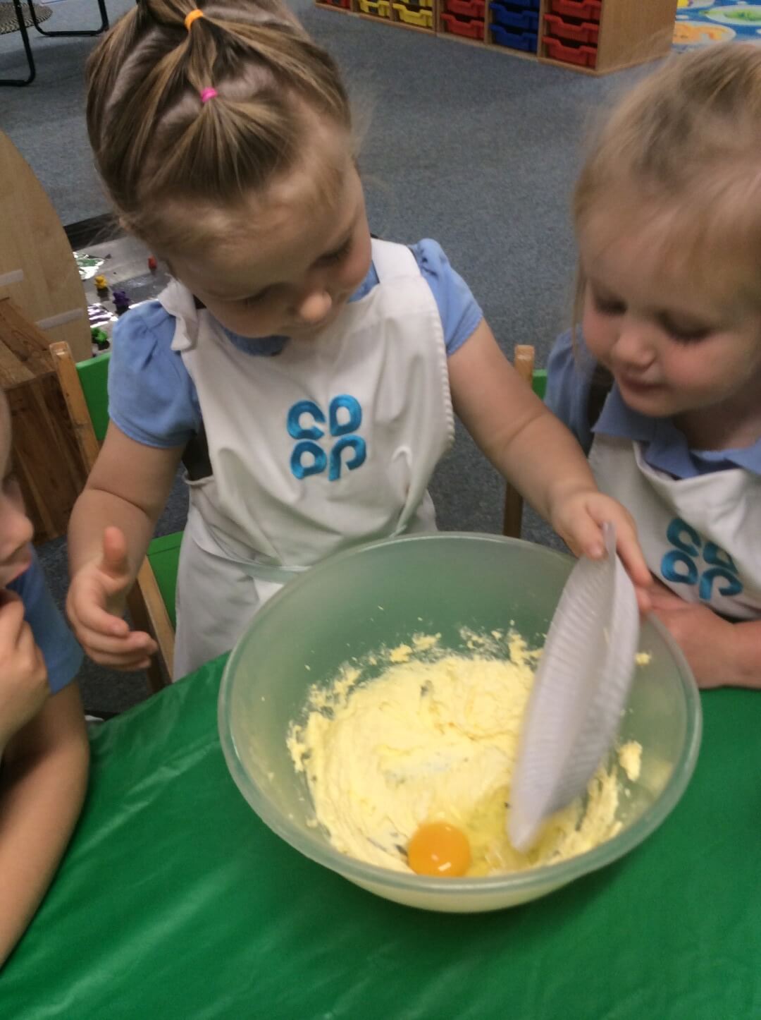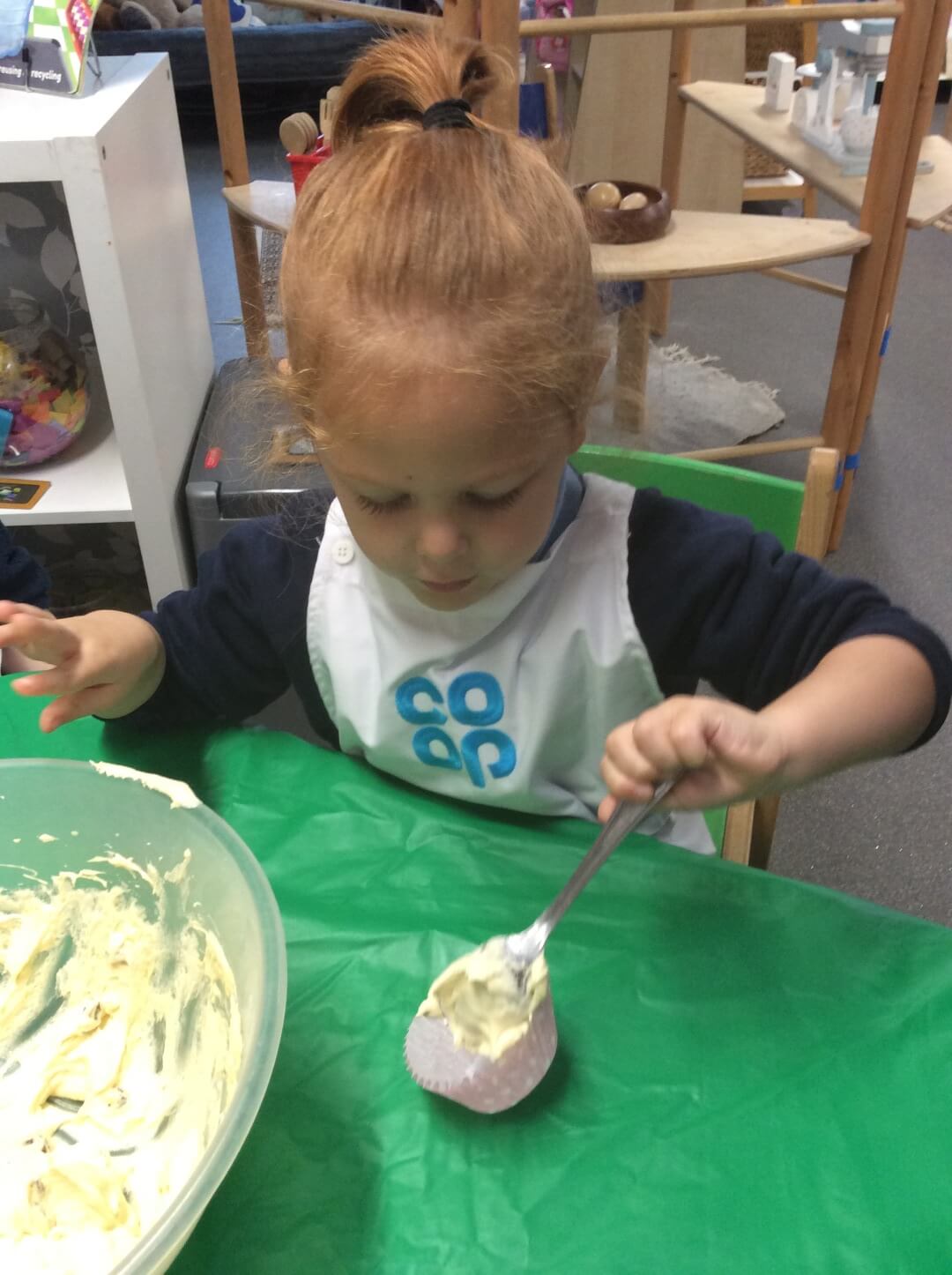 To finish off the week, the children had the exciting opportunity to bake real currant buns in small groups! They listened carefully to instructions, and took turns pouring, mixing, and stirring the ingredients. Once their buns were baked, the children decorated them with icing and a bright cherry on top – just like in the song!