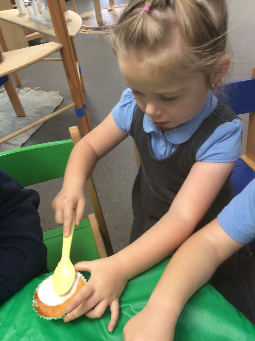 This week, the children have been focusing on the nursery rhyme ‘Five Currant Buns in a Baker’s Shop’. They have loved learning the Makaton signs to accompany the rhyme and using their fine motor skills to design and decorate their own pretend buns.