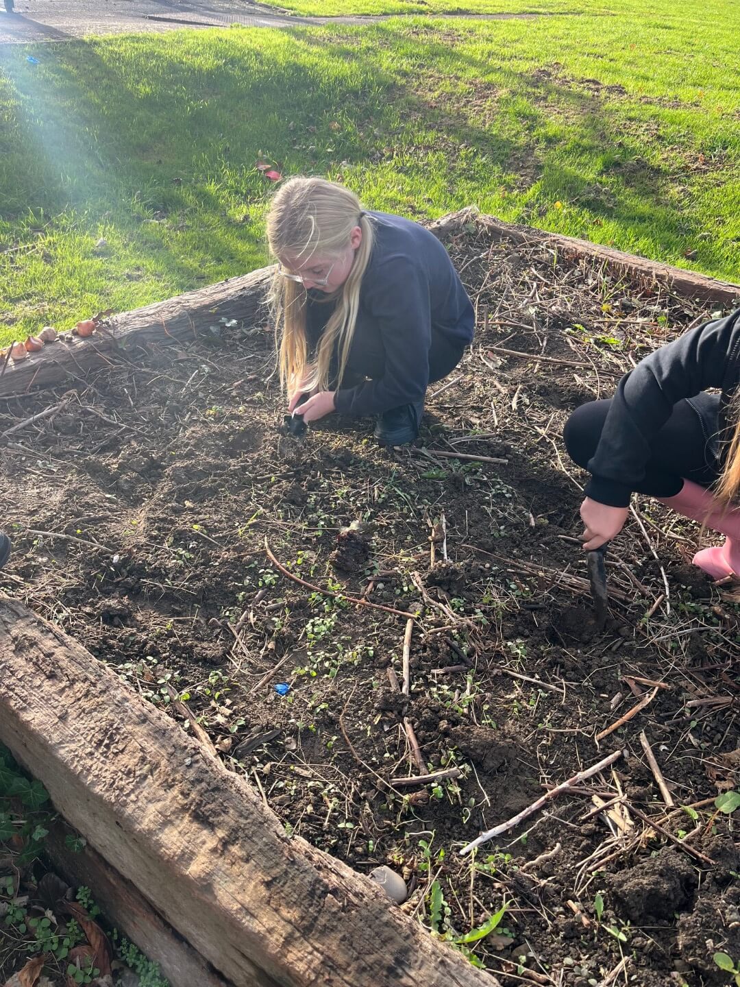 On the final day of half-term, the Eco Committee got their hands dirty by planting bulbs around the school grounds, with the aim of creating a beautiful and vibrant display for everyone to enjoy in the Spring.