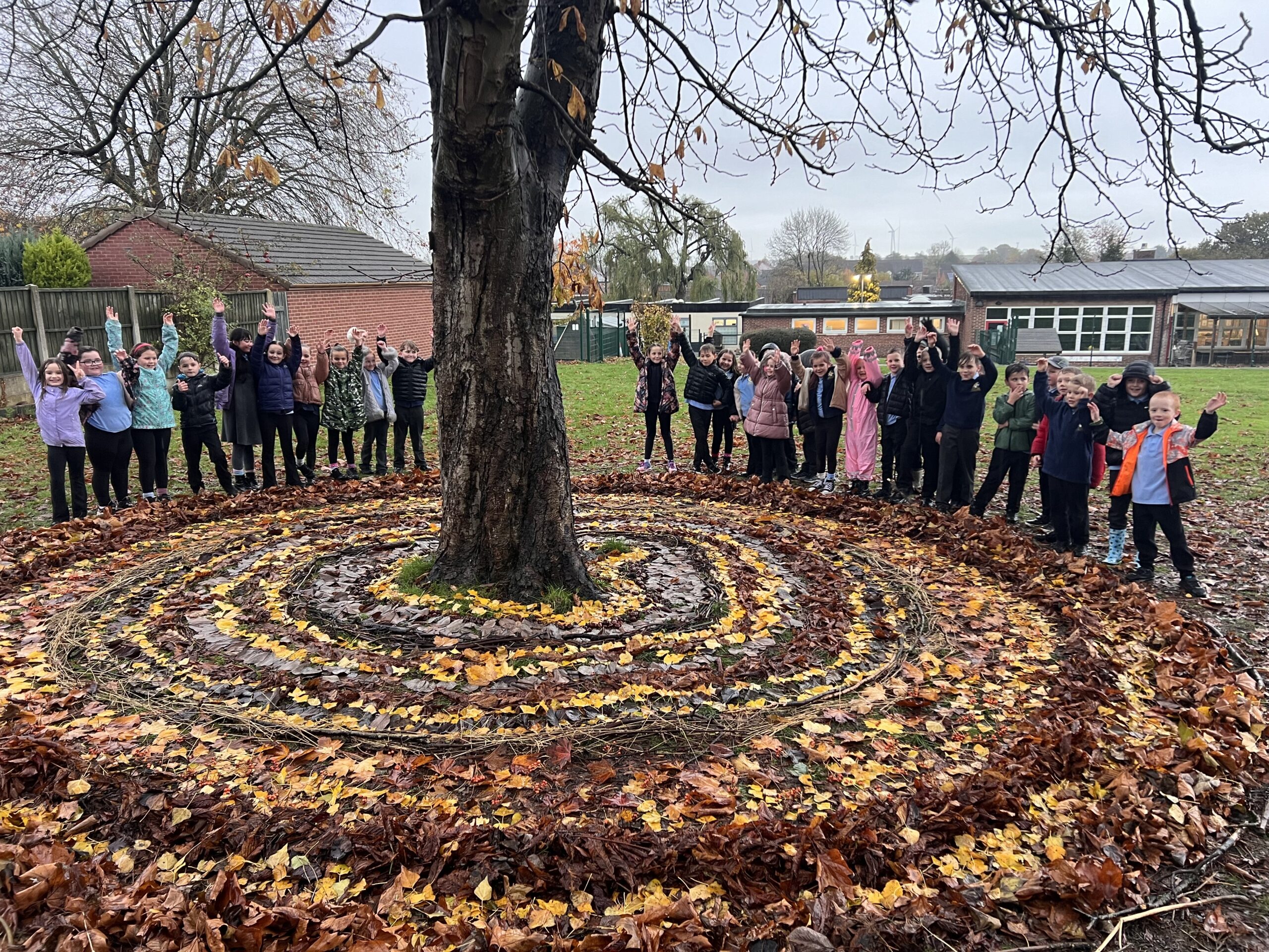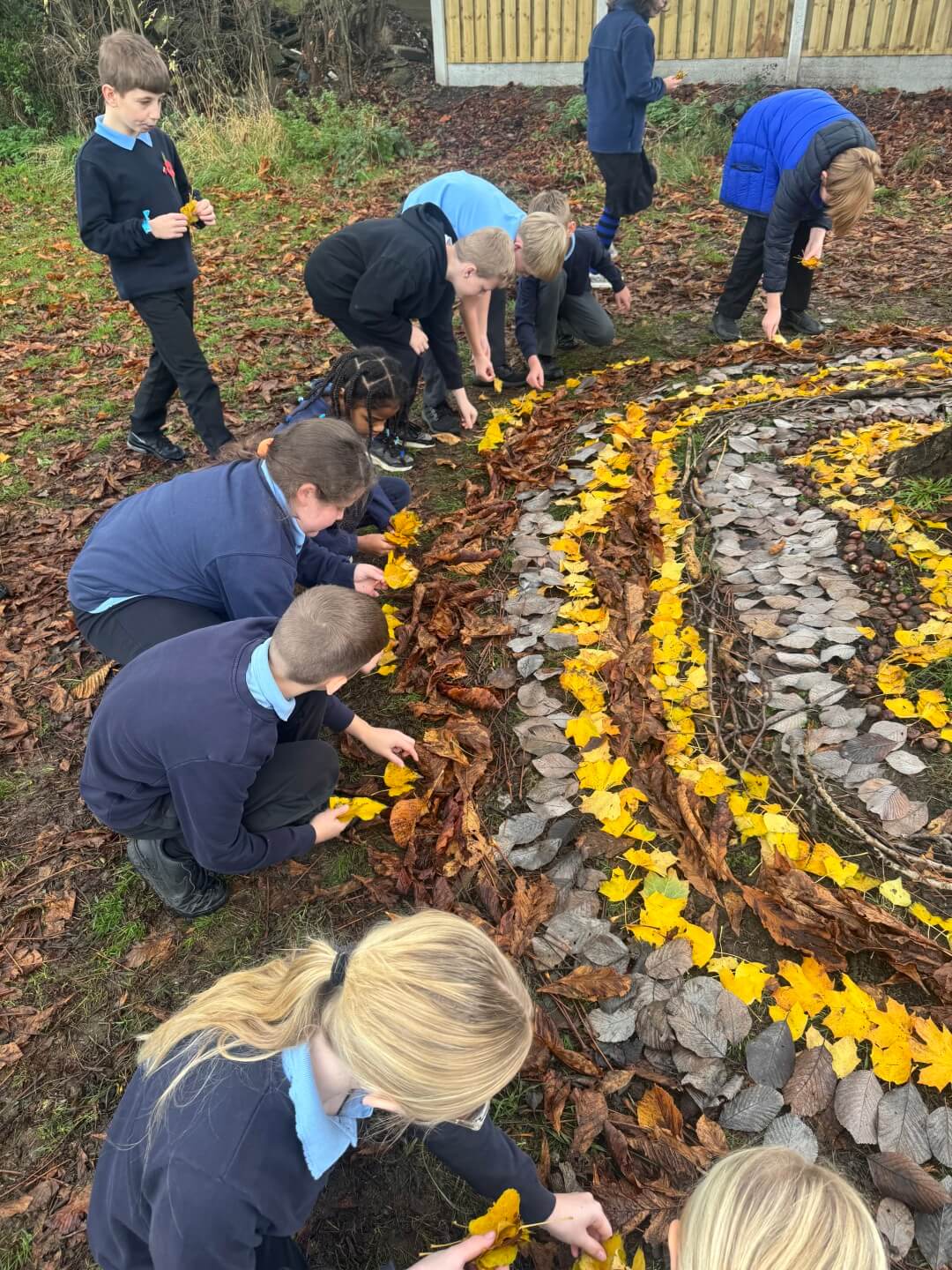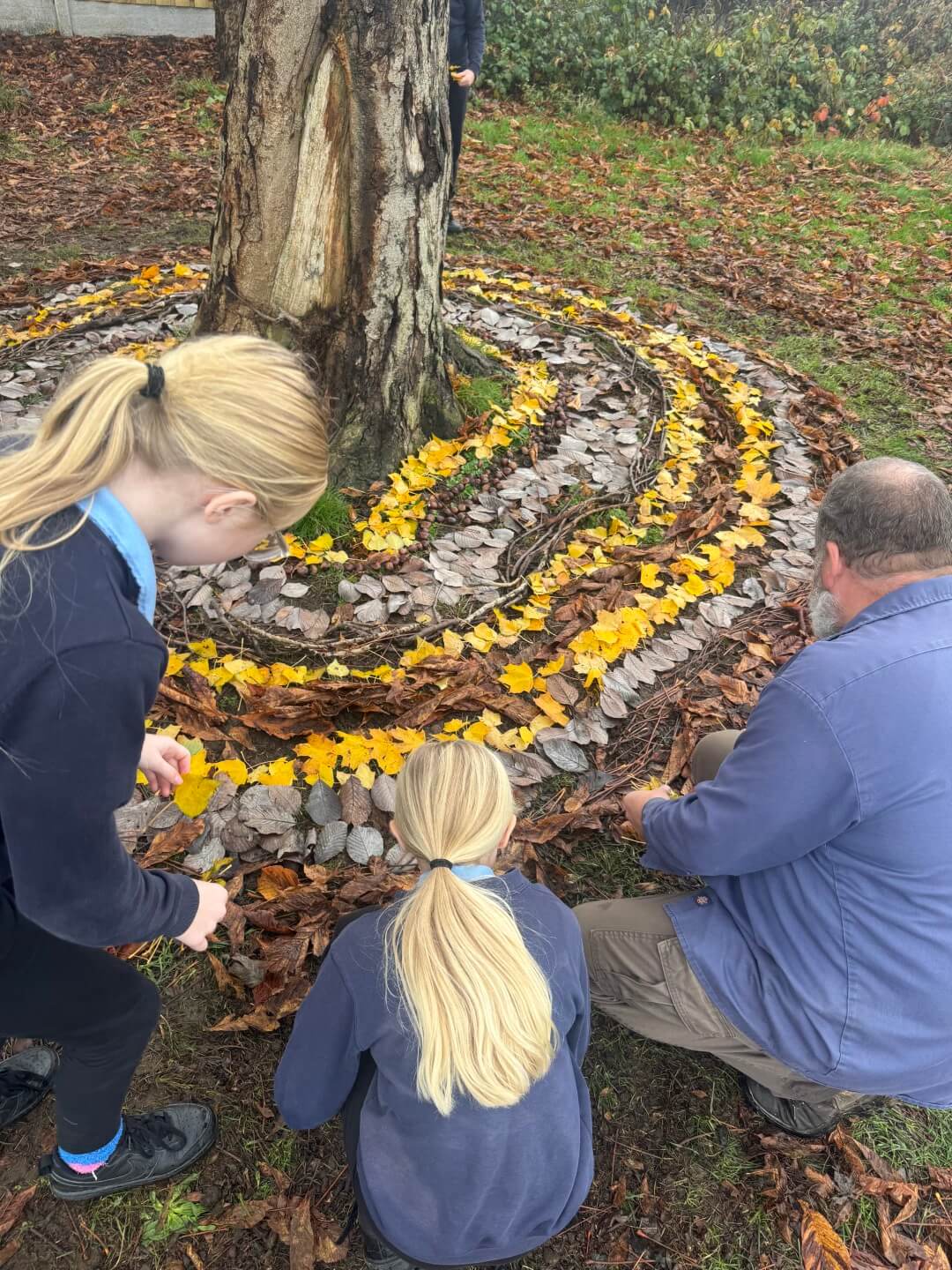Each class went outside to explore the school grounds, collecting a wide variety of natural items such as leaves, sticks, stones, and flowers. Using these materials, the children worked together to produce a stunning, whole-school piece of art that showcased their creativity and teamwork.