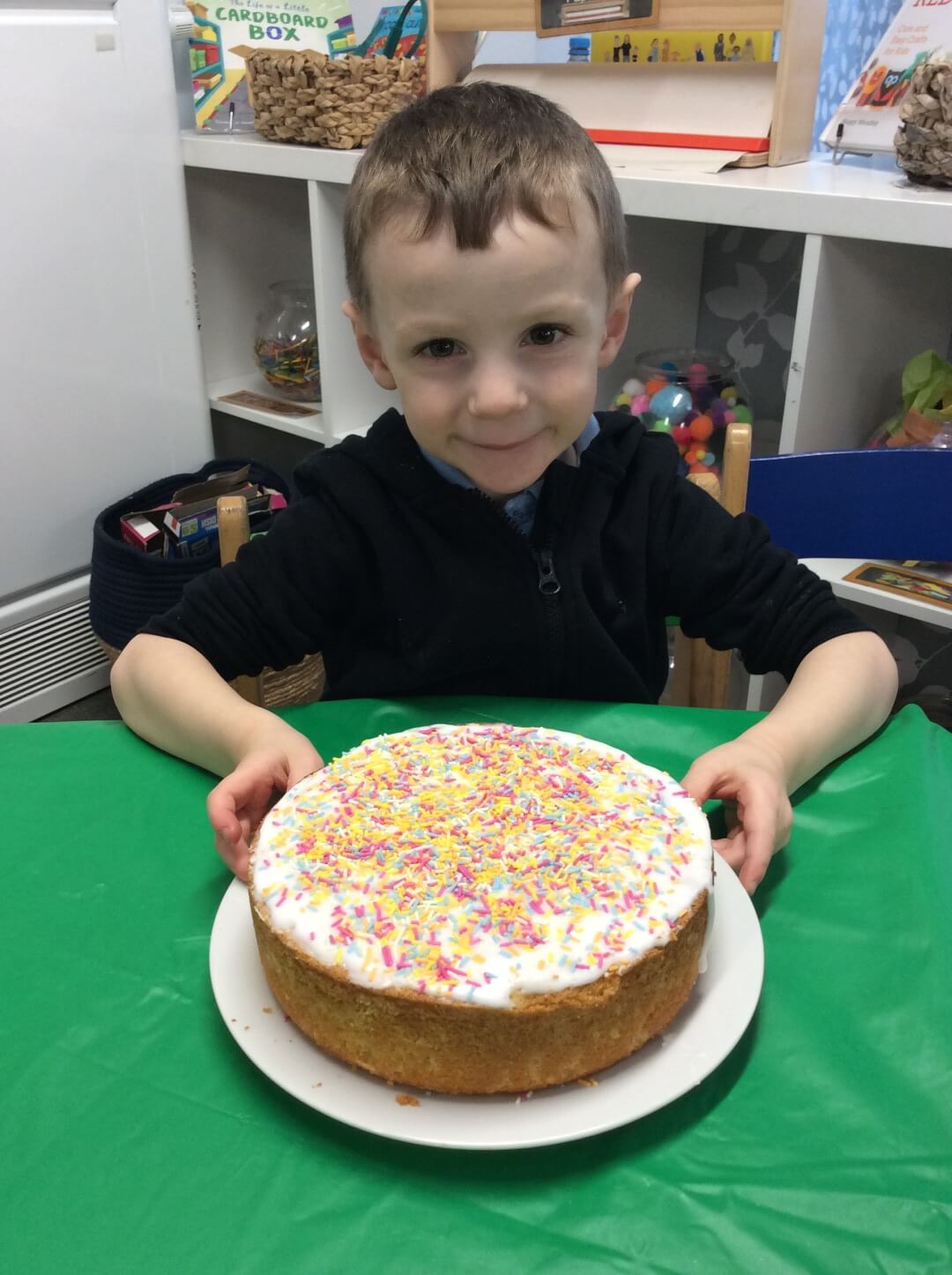 To end the week, they baked a birthday cake together and decorated it with sprinkles. The children were very excited to taste their creation afterwards! During continuous provision, they also explored the theme further by making their own birthday cakes using a range of materials.