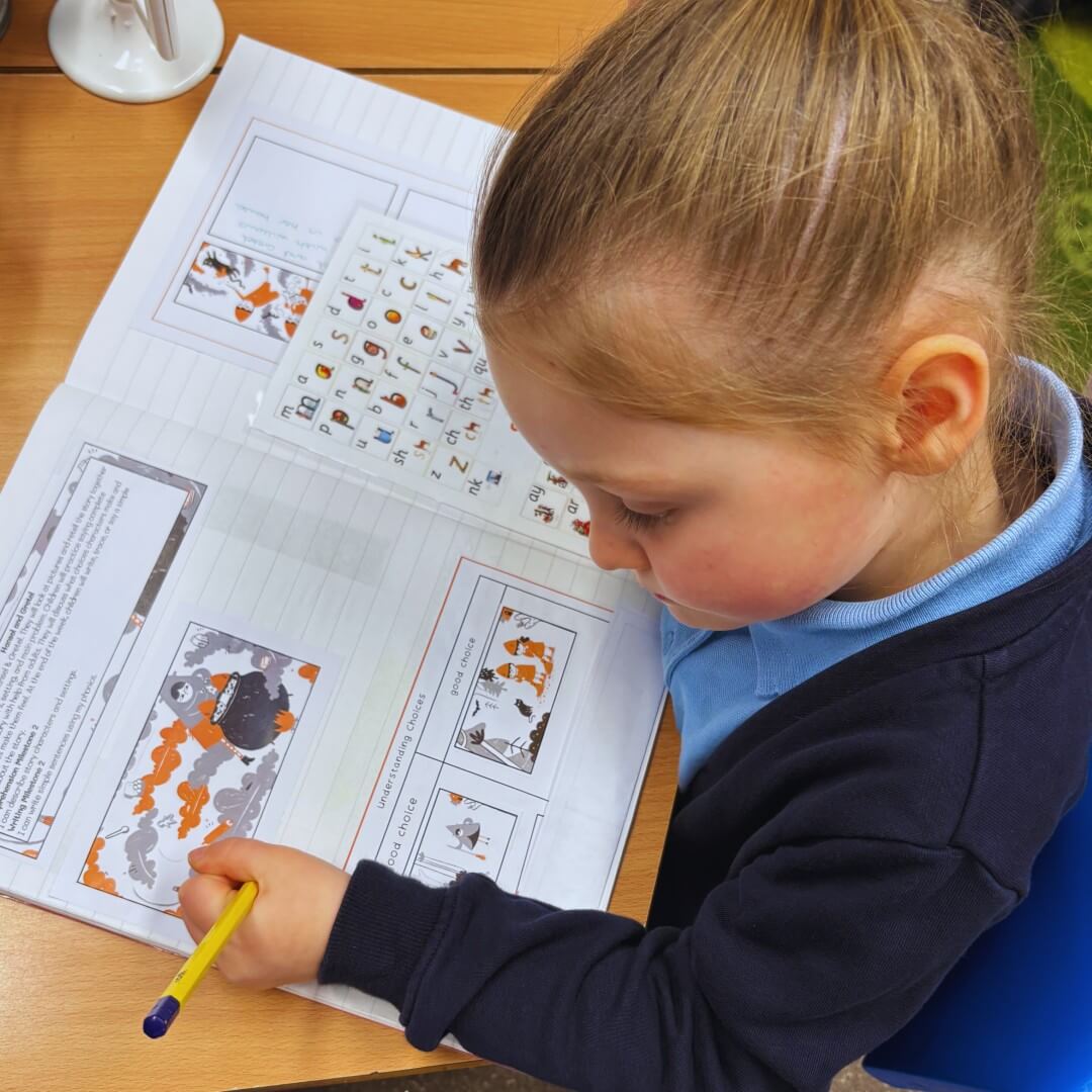 During reading time, the children also discussed the characters’ choices and how these made them feel, thinking carefully about whether actions were kind or unkind. By the end of the week, they were able to write simple sentences about the story, practising saying their sentence aloud, counting the words and writing them in a way that reflected their individual stage of learning. Well done!