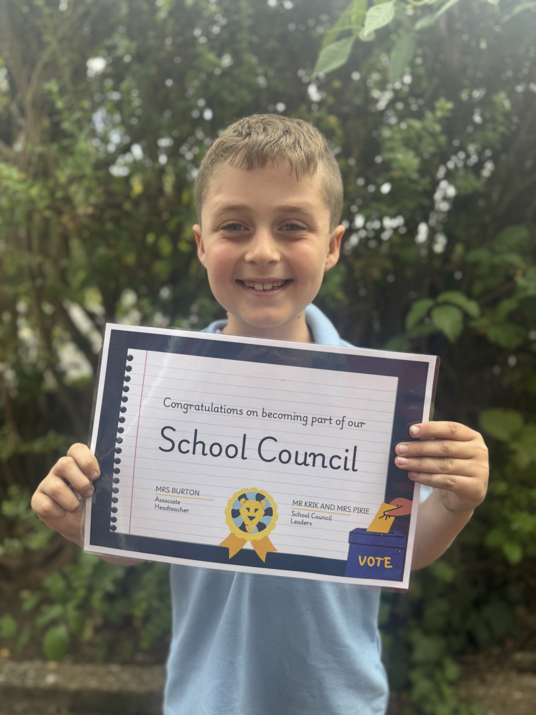 My favourite thing about school is reading and going to writing club. I love to ride my scooter to school and playing with my friends at playtime. I wanted to be part of the school council so that I could help other children.
