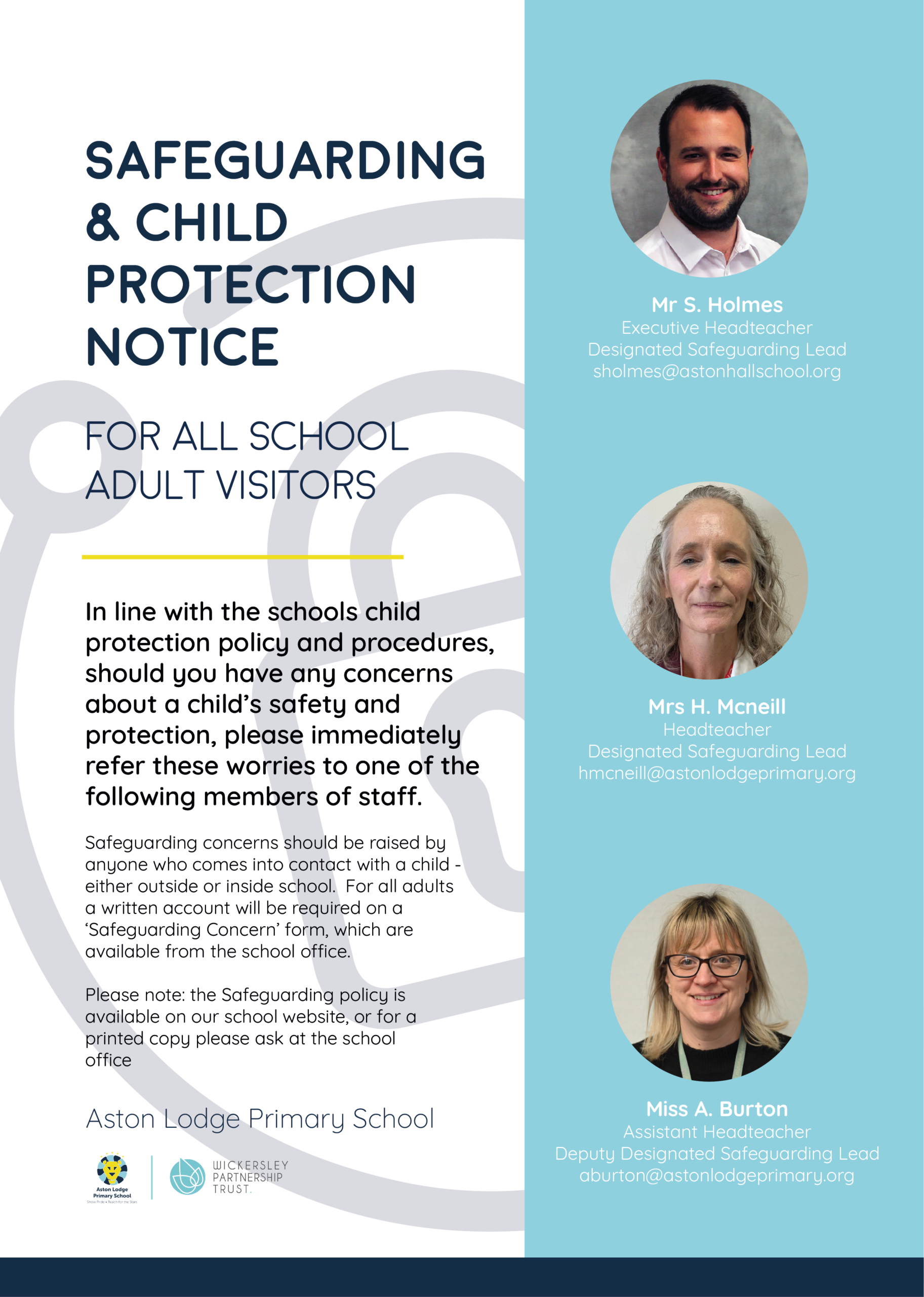 All the governors and staff at Aston Lodge Primary School share the same objective, to help keep all children safe.